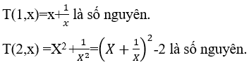 Bài 5: Cho x≠0 và x +1/x là một số nguyên. Khi đó với mọi số nguyên dương n, có kết luận gì về T(n,x) = xn + 1/xn .