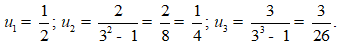 Dùng MTCT chức năng CALC: ta có u1=1/2;u2=1/4;u3=3/26