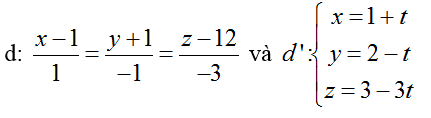 Do [u1→,u1→] = (0; 0; 0) nên đường thẳng d và d’ song song với nhau.