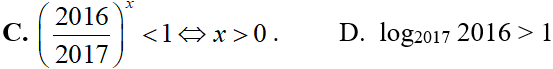 + D sai vì log20172016 < log2017 2017 = 1.