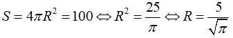 b) Diện tích mặt cầu bằng 100cm2, khi đó bán kính mặt cầu bằng: