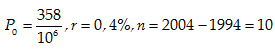 Với A= 212942000; r= 1,5%; n=2006-1998=8