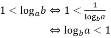 Vì logba > 0 nên ta có logba < 1 < logab.