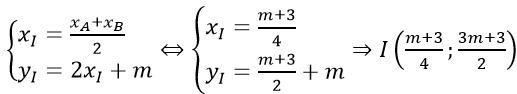Để hai điểm A,B đối xứng nhau qua d: x - 2y - 6 = 0 khi I ∈ d ⇔ (m+3)/4 - 2.(3m+3)/2 - 6 = 0 ⇔ m = -3(thỏa điều kiện (*)).