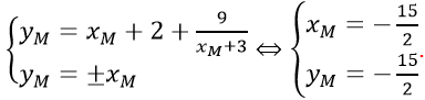 Gọi M(x_M,y_M ),(x_M≠-3) thỏa yêu cầu bài toán. Ta có: