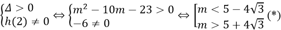 Để Δ cắt (C) tại hai điểm phân biệt thì phương trình h(x) = 0 có hai nghiệm phân biệt khác 2, tức là