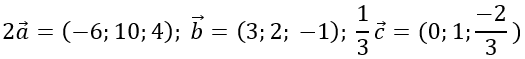 Bài 1:Trong hệ trục tọa độ Oxyz, cho các vecto a→ =-3i→ +5j→ +2k→ ; b→ =(3;2; -1); c→ =3j→ -2k→ ; d→ =(5; -3;2)