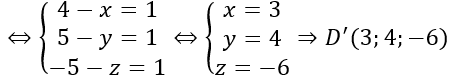 Gọi D (x; y; z) ⇒AD→=(x-1;y+3;z-1)