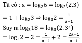 Bài 10: Cho log26=a. Khi đó giá trị của log318 được tính theo a là: