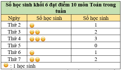 Bài 9. Theo dõi việc học tập của các thành viên trong tổ, tổ trưởng dùng các biểu tượng để ghi lại đánh giá của các thầy cô về các bạn trong tổ. Biểu đồ tranh dưới đây là kết quả đánh giá của một tuần (mỗi biểu tượng thể hiện kết quả một lần đánh giá).