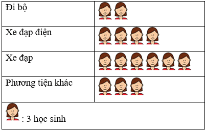 Bài 4. Biểu đồ tranh dưới đây biểu diễn số lượng các học sinh lớp 6C sử dụng các phương tiện khác nhau để đến trường.