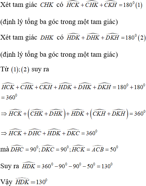 Xét ∆AKC ta có: AH ⊥ BC ⇒ CH ⊥ AK. (1)