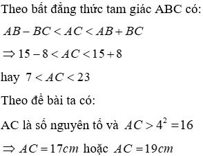 Vậy độ dài cạnh AC có thể là 17 cm và 19 cm