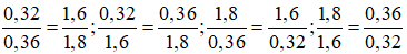 b) Từ 0,32 . 1,8 = 0,36 . 1,6, ta lập được các tỉ lệ thức sau: