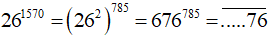 - Số 26n (với n ∈ N, n > 1) có tận cùng là 76.