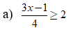 b) Ta có: 3 - 4x ≥ 19 ⇔ 3 - 19 ≥ 4x ⇔ - 16 ≥ 4x ⇔ x ≤ - 4