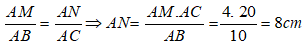 Bài 6: Cho tam giác ABC, trên AB lấy điểm M sao cho AM = 4cm và MB = 6cm . Qua M kẻ đường thẳng song song với BC cắt AC tại N biết AC = 20cm . Tính AN?