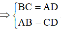 Áp dụng tính chất về cạnh và giả thiết vào hình chữ nhật ABCD, ta được