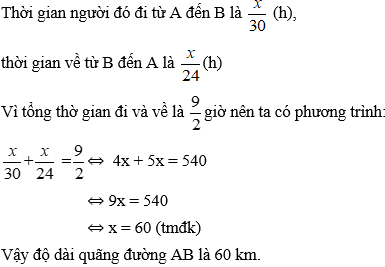 Vì thời gian lượt về bằng thời gian lượt đi nên ta có phương trình:
