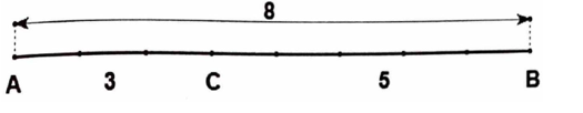 Bài tập mẫu 2: Điểm C thuộc đoạn thẳng AB và chia AB theo tỉ số \[\frac{3}{5}\]. Hãy tính các tỉ số \[\frac{{AB}}{{AC}}\] và \[\frac{{AB}}{{CB}}\]