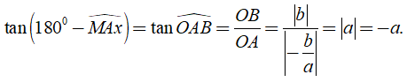 Gọi A là giao điểm của đường thẳng y = ax + b với trục Ox và M là một điểm thuộc đường thẳng và có tung độ dương. Khi đó ∠MAx là góc tạo bởi đường thẳng y = ax + b với trục Ox.