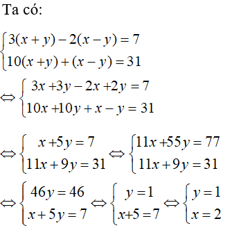 Vậy hệ phương trình có nghiệm duy nhất (x; y) = (31; −3)