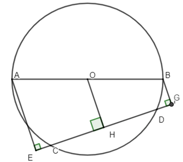 Ví dụ 1: Cho đường tròn (O) đường kính AB, dây CD không cắt đường kính AB. Kẻ AE và BG lần lượt vuông góc với CD tại E và G. Chứng minh CE = DG.