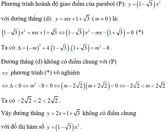 +) (d) và (P) không cắt nhau phương trình hoành độ giao điểm vô nghiệm (Δ = 0 hoặc Δ' = 0).