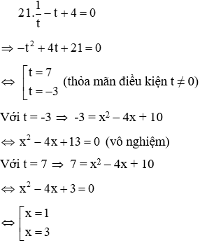 Với t = -3 ⇒ -3 = x2 + 4x + 2 ⇔ x2 + 4x + 5 = 0 (phương trình vô nghiệm)