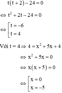 Với t = -6 ⇒ -6 = x2 + 5x + 4 ⇔ x2 + 5x + 10 = 0 (phương trình vô nghiệm)