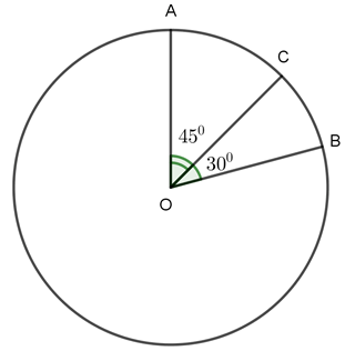 Câu 10 : Cho đường tròn tâm O. Hai điểm A, B nằm trên đường tròn sao cho . Tính số đo cung .