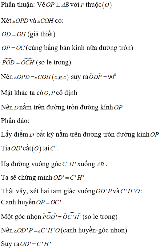 Kết luận: Quỹ tích (tập hợp) các điểm D khi C chạy trên nửa đường tròn đường kính AB là đường tròn đường kính OP với P là điểm chính giữa cung AB.