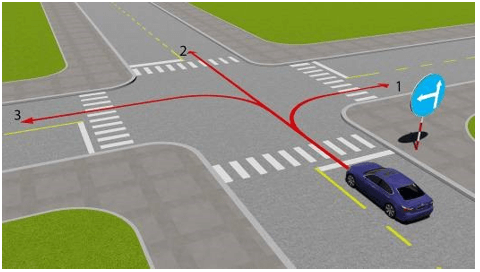 Câu 47: Người lái xe điều khiển xe rẽ trái như thế nào là đúng quy tắc giao thông?