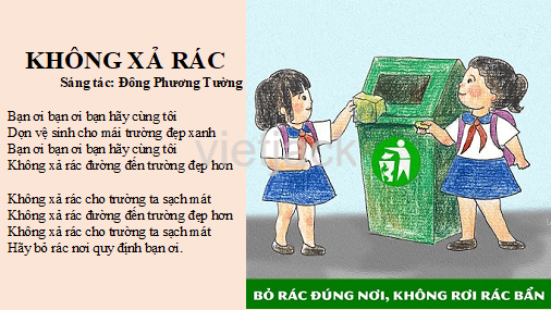 - Nhặt rác rơi ở sàn lớp, trên sân trường cho vào thùng rác.