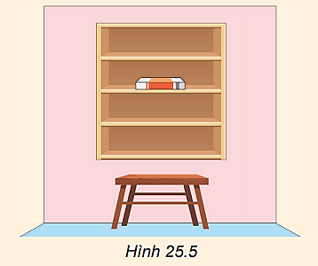 Hình 25.5 mô tả một cuốn sách được đặt trên giá sách. Hãy so sánh thế năng của cuốn sách