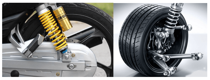 - Khi di chuyển qua đoạn đường xóc, có chướng ngại vật sẽ tác động lực lên ti phuộc và đi vào vỏ phuộc. Lúc này, lò xo giảm chấn sẽ bị nén lại và hấp thụ lực vừa truyền lên.