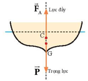Lưu ý: Khi vật nằm yên, điểm đặt C của lực đẩy ở trên đường thẳng đứng đi qua trọng tâm G của vật.