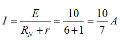 Bài 7: Cho một mạch điện gồm một pin 1,5 V có điện trở trong 0,5 Ω nối với mạch ngoài là một điện trở 2,5 Ω. Cường độ dòng điện trong toàn mạch là