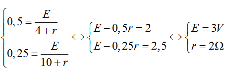 Bài 25: Hai điện trở R1 = 2Ω, R2 = 6Ω , mắc vào nguồn (E, r). Khi R1 nối tiếp R2 cường độ trong mạch là 0,5A. Khi R1 song song R2 thì cường độ trong mạch là 1,8A. Tính E và r.