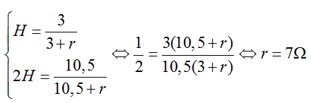 Bài 26: Biết rằng điện trở mạch ngoài của một nguồn điện tăng từ R1=3Ω đến R2=10,5Ω thì hiệu suất của nguồn tăng gấp 2 lần. Điện trở trong của nguồn bằng