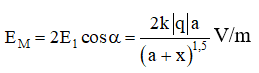b. Xác định x để cường độ điện trường tại M cực đại, tính giá trị đó.