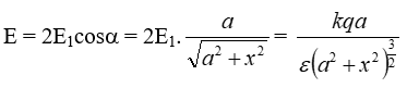 E = E1cosα + E2cosα = 2E1cosα = 2E1. ≈ 351.103 V/m.