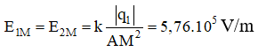 Vì E→1M cùng phương và cùng chiều với E→2M nên EM = E1M + E2M = 6,4.105 V/m