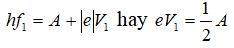 Bài 6: Chiếu bức xạ có tần số f1 vào quả cầu kim loại đặt cô lập thì xãy ra hiện tượng quang điện với điện thế cực đại của quả cầu là V1 và động năng ban đầu cực đại của e quang điện đúng bằng một nửa công thoát của kim loại. Chiếu tiếp bức xạ có tần số f2 = f1 + f vào quả cầu đó thì điện thế cực đại của quả cầu là 5V1. Hỏi chiếu riêng bức xạ có tần số f vào quả cầu trên (đang trung hòa về điện) thì điện thế cực đại của quả cầu là: