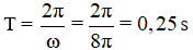 + Thay k = 100N/m và m = 250g = 0,25kg vào
