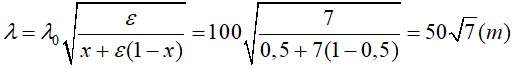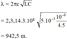 Bài 29: Mạch dao động LC có tụ phẳng không khí hình tròn bán kính 48 cm cách nhau 4 cm phát ra sóng điện từ có bước sóng 100 m. Nếu đưa vào giữa hai bản tụ một tấm điện môi phẳng song song và cùng kích thước với hai bản có hằng số điện môi ε = 7, bề dày 2 cm ghét sát vào một bản thì phát ra sóng có bước sóng là: