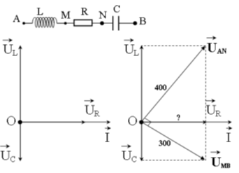 Câu 21. Trên đoạn mạch xoay chiều không phân nhánh có bốn điểm theo đúng thứ tự A, M, N và B. Giữa hai điểm A và M chỉ có cuộn cảm thuần, giữa hai điểm M và N chỉ có điện trở thuần, giữa hai điểm N và B chỉ có tụ điện. Điện áp hiệu dụng giữa hai điểm A và N là 400 (V) và điện áp hiệu dụng hai điểm M và B là 300 (V). Điện áp tức thời trên đoạn AN và trên đoạn MB lệch pha nhau 90°. Điện áp hiệu dụng trên R là