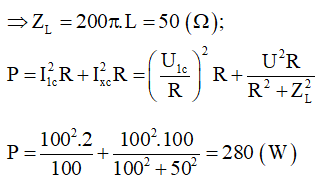 Câu 22. Đặt một điện áp có biểu thức u = 200√2cos2(100πt) (V) vào hai đầu đoạn mạch AB gồm điện trở R = 100 Ω và cuộn cảm thuần có độ tự cảm 0,25/π (H) mắc nối tiếp. Công suất tỏa nhiệt trên điện trở là
