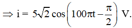 Cường độ dòng điện hiệu dụng I = 5 A ⇒ cường độ dòng điện cực đại I0 = 5√2 A