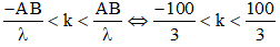 Ta có λ = v/f = 30 cm. Số vân dao động với biên độ dao động cực đại trên đoạn AB thõa mãn điều kiện: